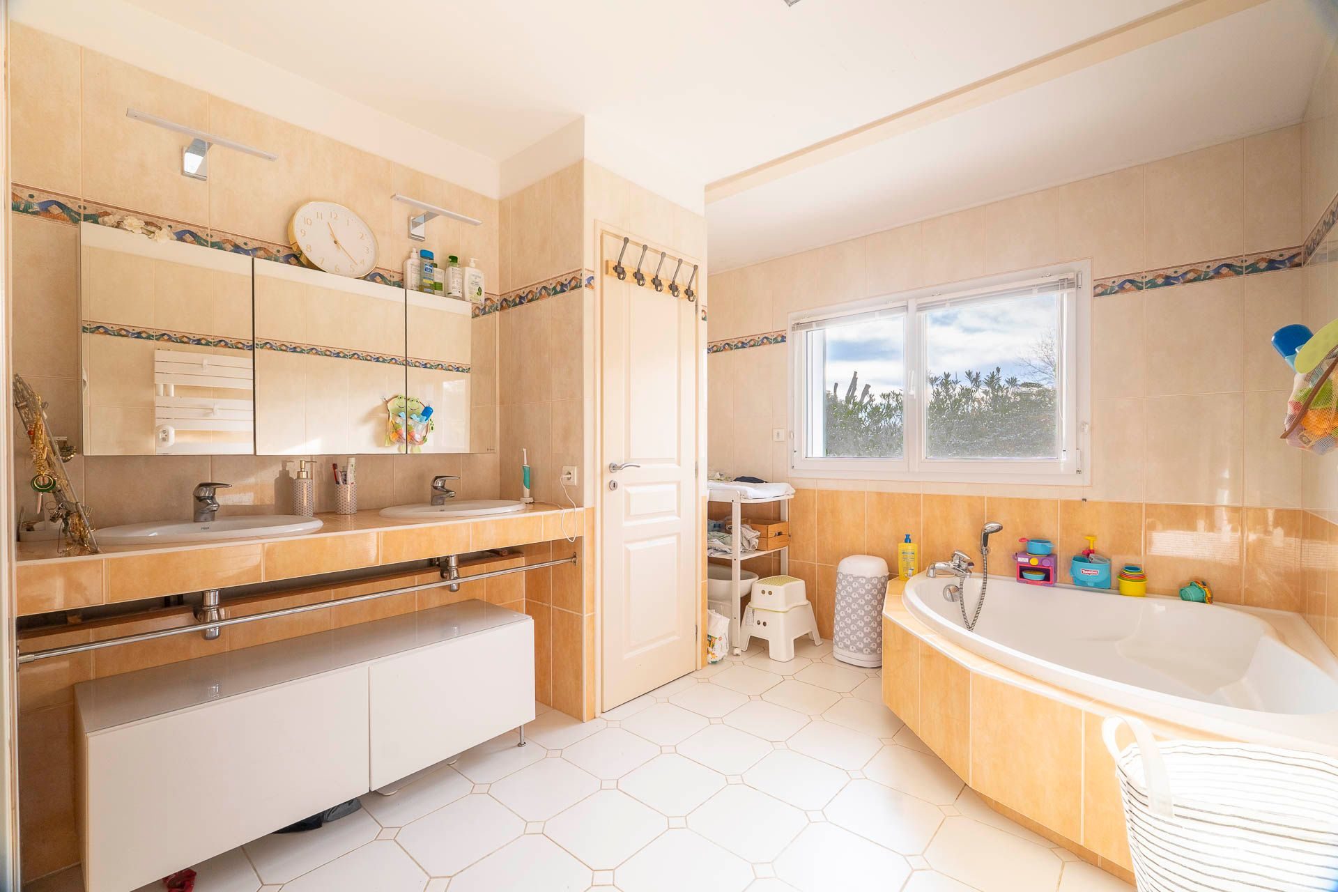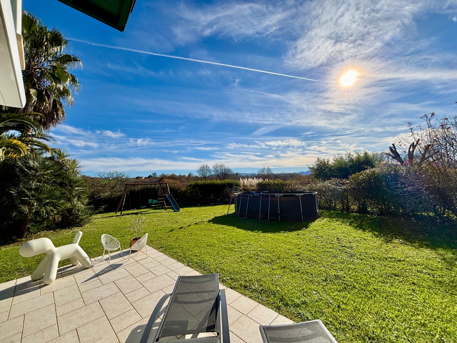 Sur les hauteurs paisibles de Villefranque, au cœur d’un environnement préservé et verdoyant, découvrez cette maison contemporaine lumineuse, offrant un cadre de vie rare, entre nature et commodités. Cette villa vous permettra de loger confortablement une grande famille tout en gardant un espace indépendant pour recevoir, télétravailler ou envisager un projet locatif. La partie principale propose un séjour avec salle à manger baigné de lumière, ouvert sur une terrasse exposée plein sud, face aux montagnes. La cuisine, séparée, bénéficie elle aussi d’un accès direct vers l’extérieur. L’espace nuit se compose d’une chambre parentale avec salle de bains complète, de quatre chambres supplémentaires, d’une salle de douche, de toilettes indépendants et d’une buanderie. L’appartement attenant dispose de sa propre cuisine, d’un séjour ouvrant sur une terrasse extérieure, de deux chambres et d’une salle d’eau, offrant une réelle autonomie tout en restant connecté à la maison. À l’extérieur, le jardin paysagé laisse entrevoir la possibilité d’implanter une piscine pour parfaire ce cadre de vie. Un garage fermé, un carport pour deux véhicules, un chauffage au sol ainsi que des panneaux photovoltaïques avec contrat de rachat d’énergie complètent les prestations. Une propriété harmonieuse, confortable et polyvalente, idéale pour ceux qui recherchent le calme, l’espace et la proximité de Bayonne, sans compromis sur la qualité de vie. Ici, le silence, les vues dégagées et la sensation d’espace s’allient à la proximité des écoles, commerces et axes menant rapidement à Bayonne et au village d’Ustaritz.