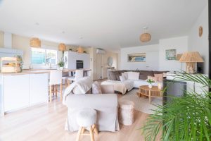 Très lumineuse, elle offre une belle pièce de vie chaleureuse avec poêle à granulés, idéale pour les moments de convivialité. L’agencement est parfaitement pensé avec trois chambres confortables et des prestations de qualité. Aucun travaux à prévoir.