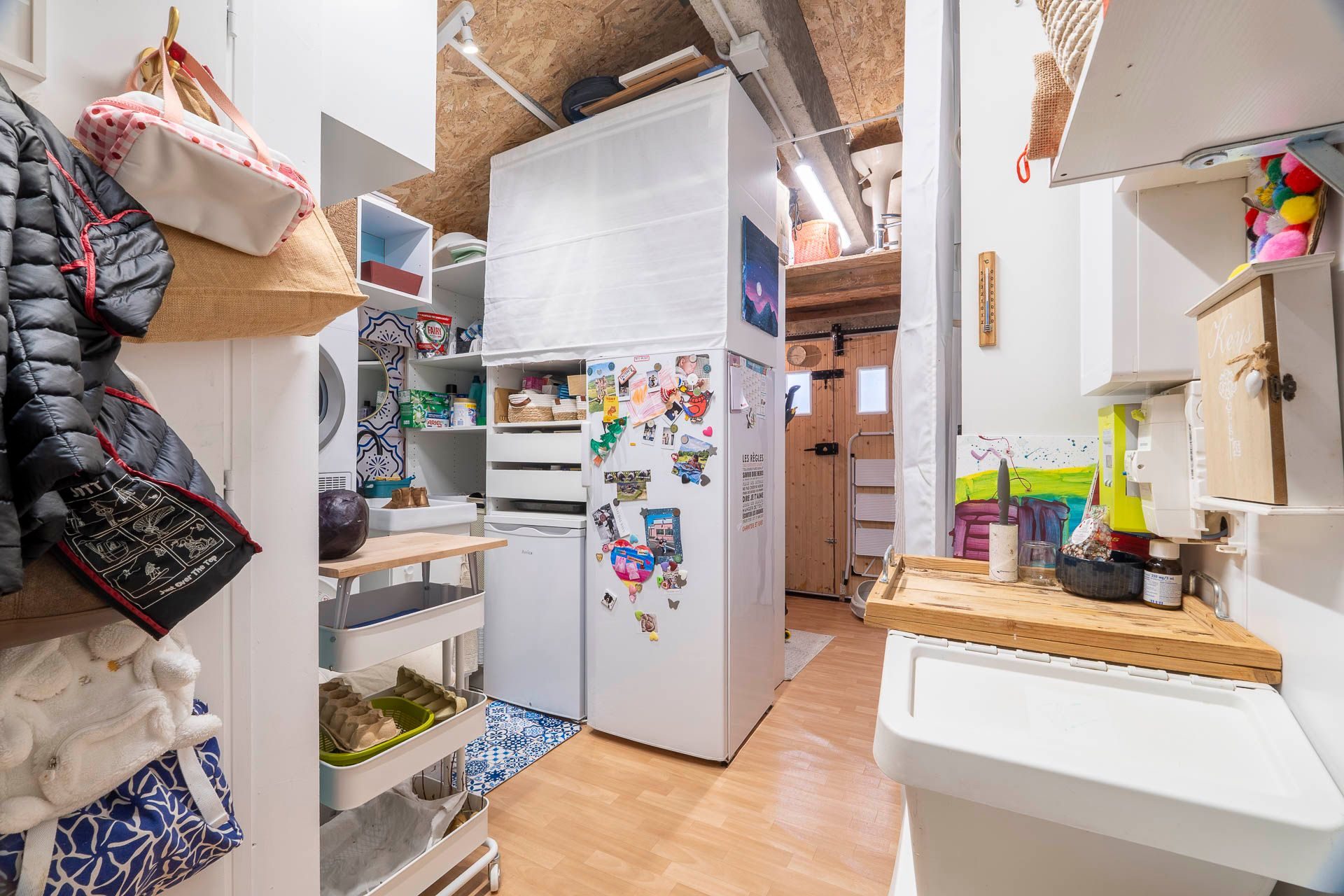 Le garage, entièrement aménagé, apporte un véritable espace complémentaire (atelier, rangement, salle de sport ou bureau selon vos besoins).