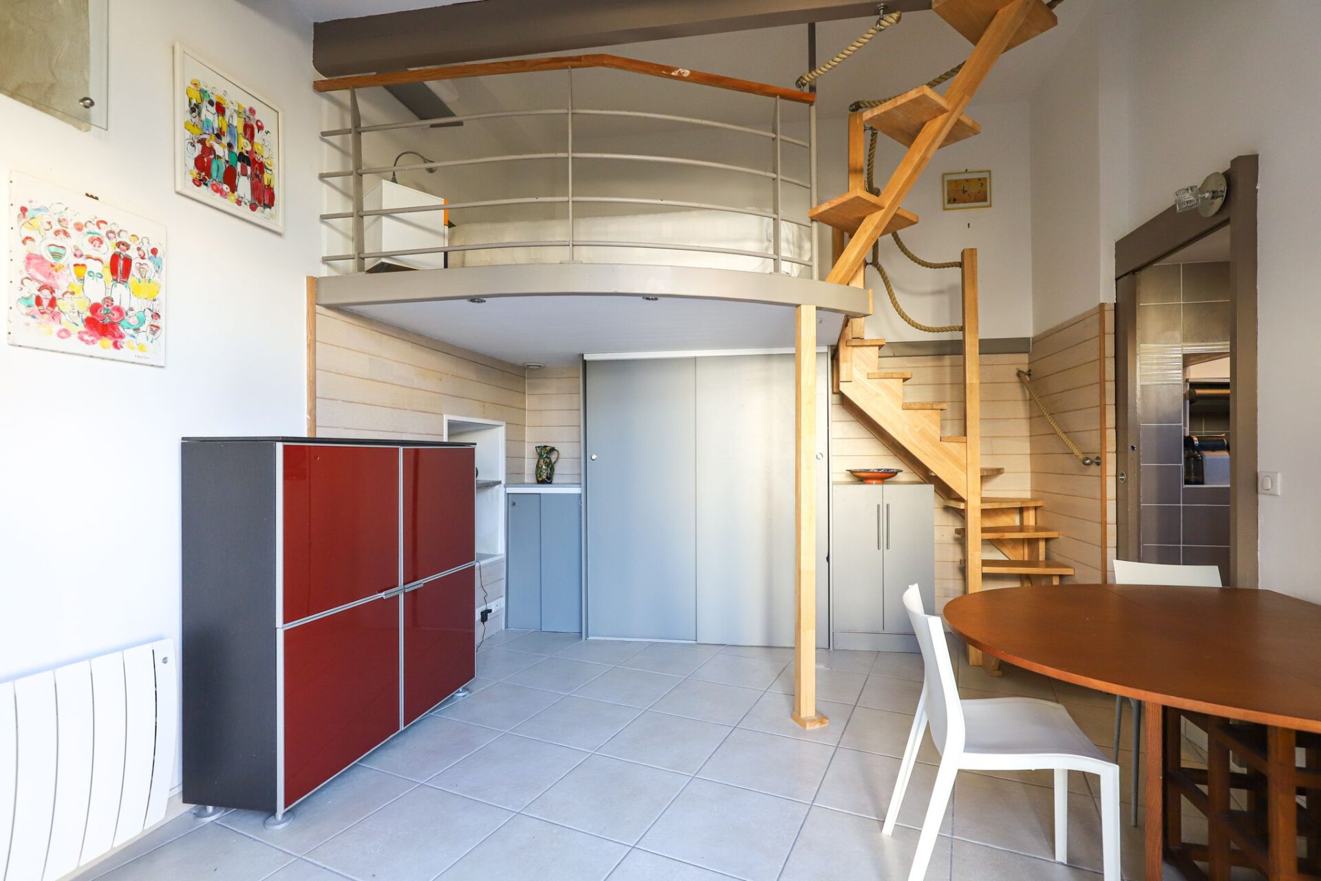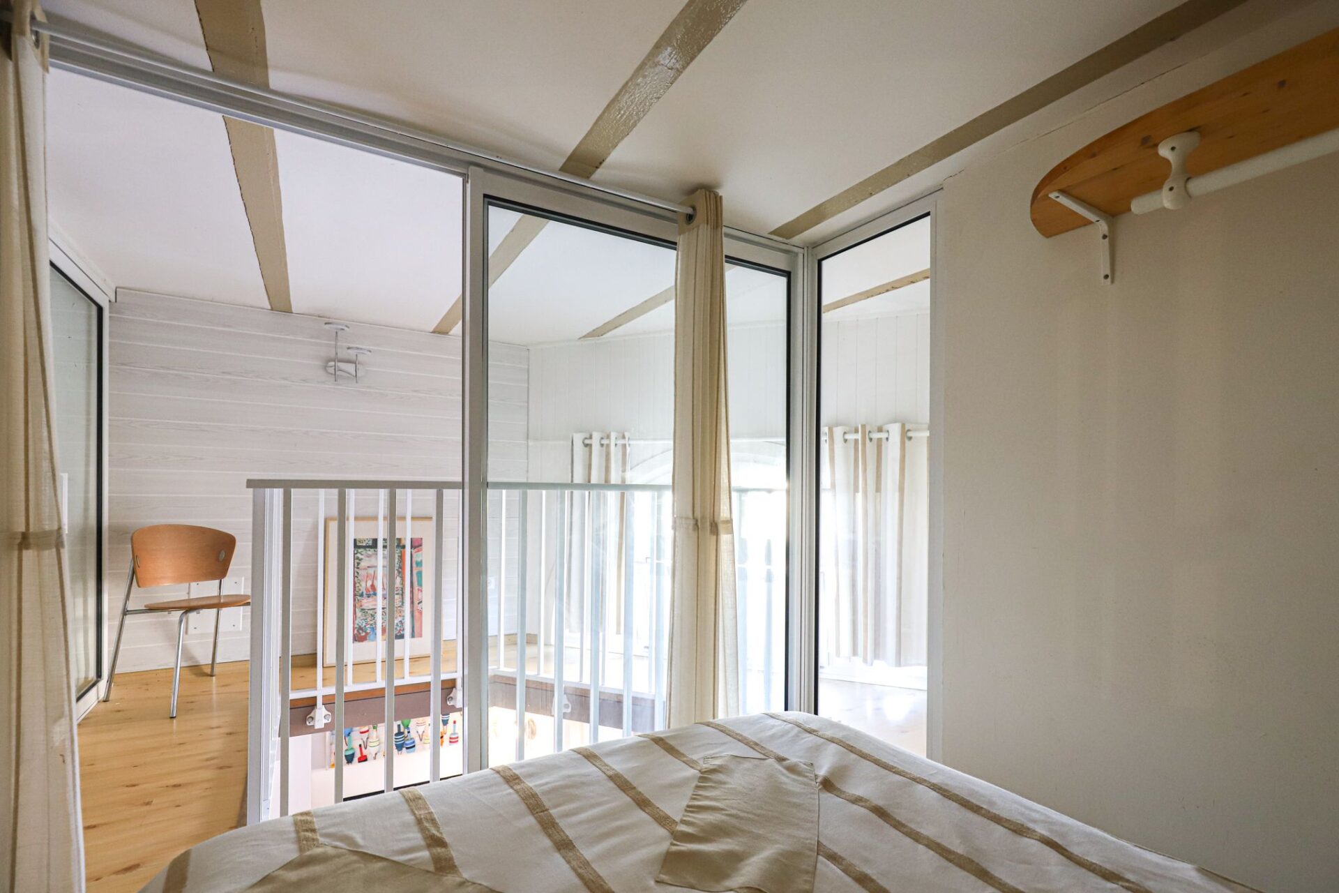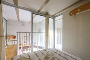 CĂ´tĂ© Nuit ,l’appartement dispose d’une chambre et de 3 espaces nuit en mezzanine astucieusement amĂ©nagĂ©s offrant une capacitĂ© de couchage optimale pour une famille ou des invitĂ©s soit huit personnes, ainsi qu’une salle de bain et une salle d’eau.