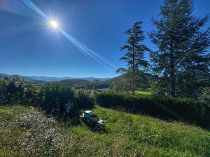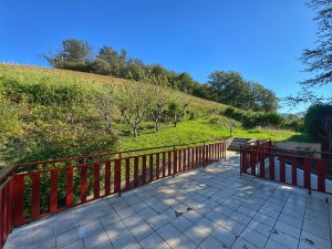 À l’extérieur, la propriété s’étend sur un terrain de 8 063 m², offrant un cadre naturel privilégié avec trois terrasses, un appentis avec coin barbecue, un garage indépendant, le tout bénéficiant d’une vue dégagée et imprenable sur les montagnes.