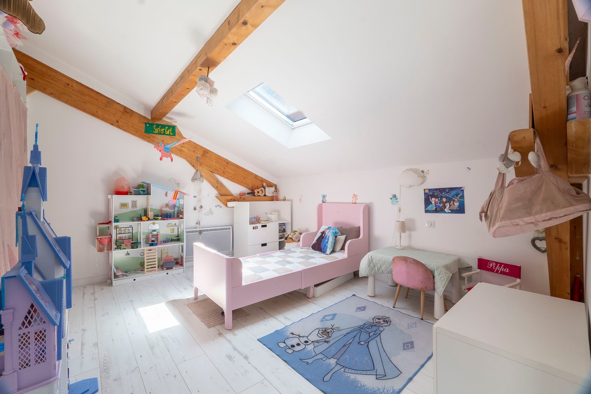Le bien offre quatre chambres, dont une chambre en rez-de-chaussée avec salle d’eau, ainsi qu’une suite à l’étage avec dressing et salle de bain. Cet agencement permet de répondre parfaitement aux besoins d’une vie de famille ou d’un espace de télétravail confortable.