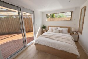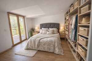 – Cinq chambres, dont une suite parentale avec terrasse et vue dégagée sur la forêt