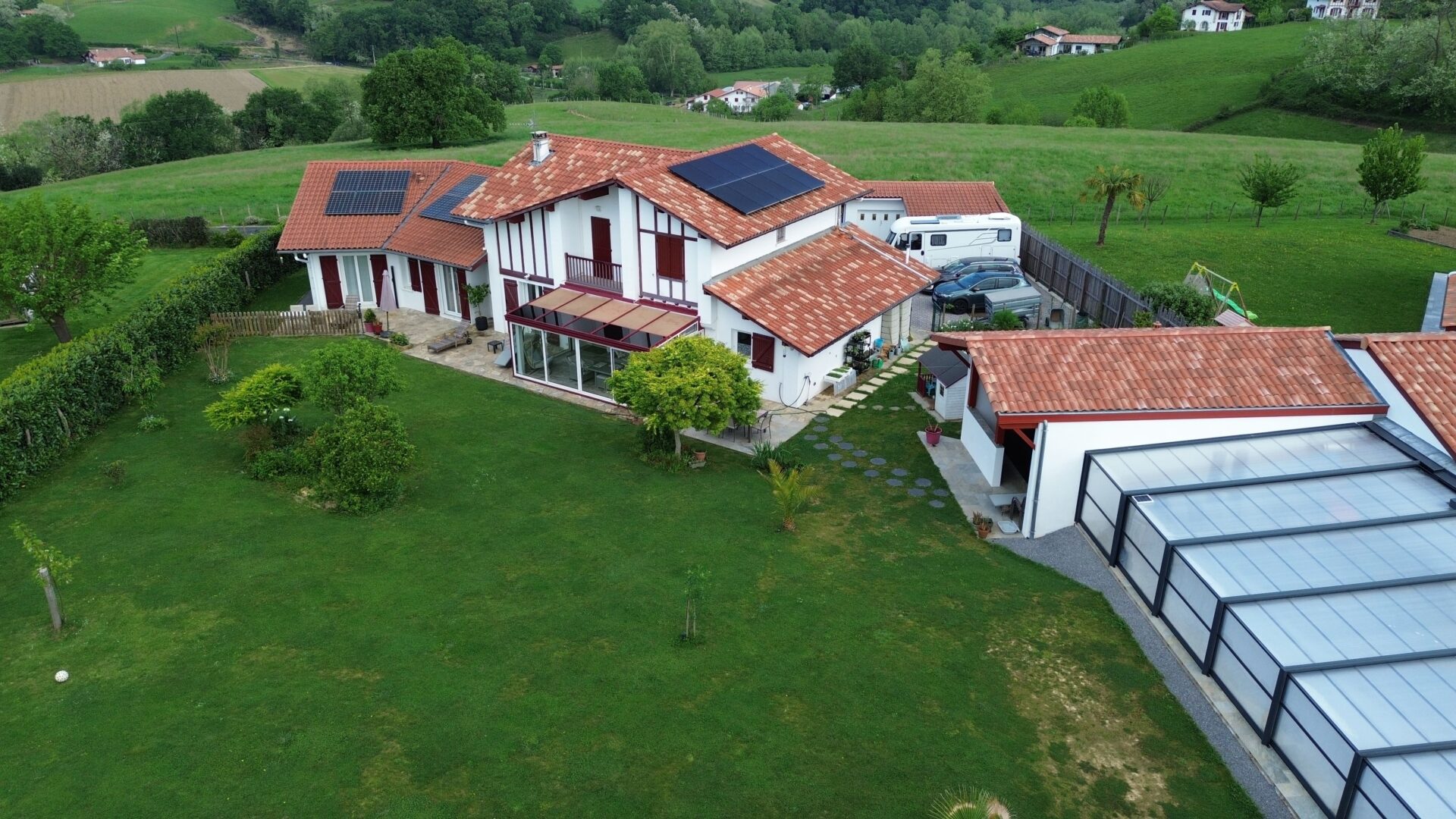 domotique intégrale, alarme, vidéosurveillance, portail électrique, cumulus thermodynamique et panneaux photovoltaïques dont 23 installés en 2023, garantissant confort optimal et maîtrise des consommations.