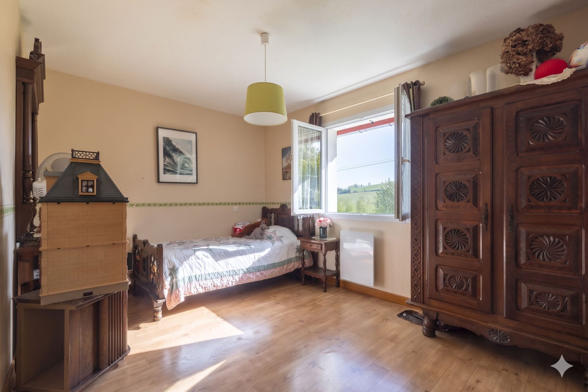Dès l’entrée, vous serez séduit par sa pièce de vie lumineuse avec séjour cathédral de plus de 55m2 , ouvrant sur une agréable terrasse couverte. Côté nuit, la maison propose une salle de bains avec douche et baignoire, 4 chambres spacieuses, dont 3 situées de plain-pied donnant sur la vue dégagée de la campagne environnante pour un confort de vie optimal.