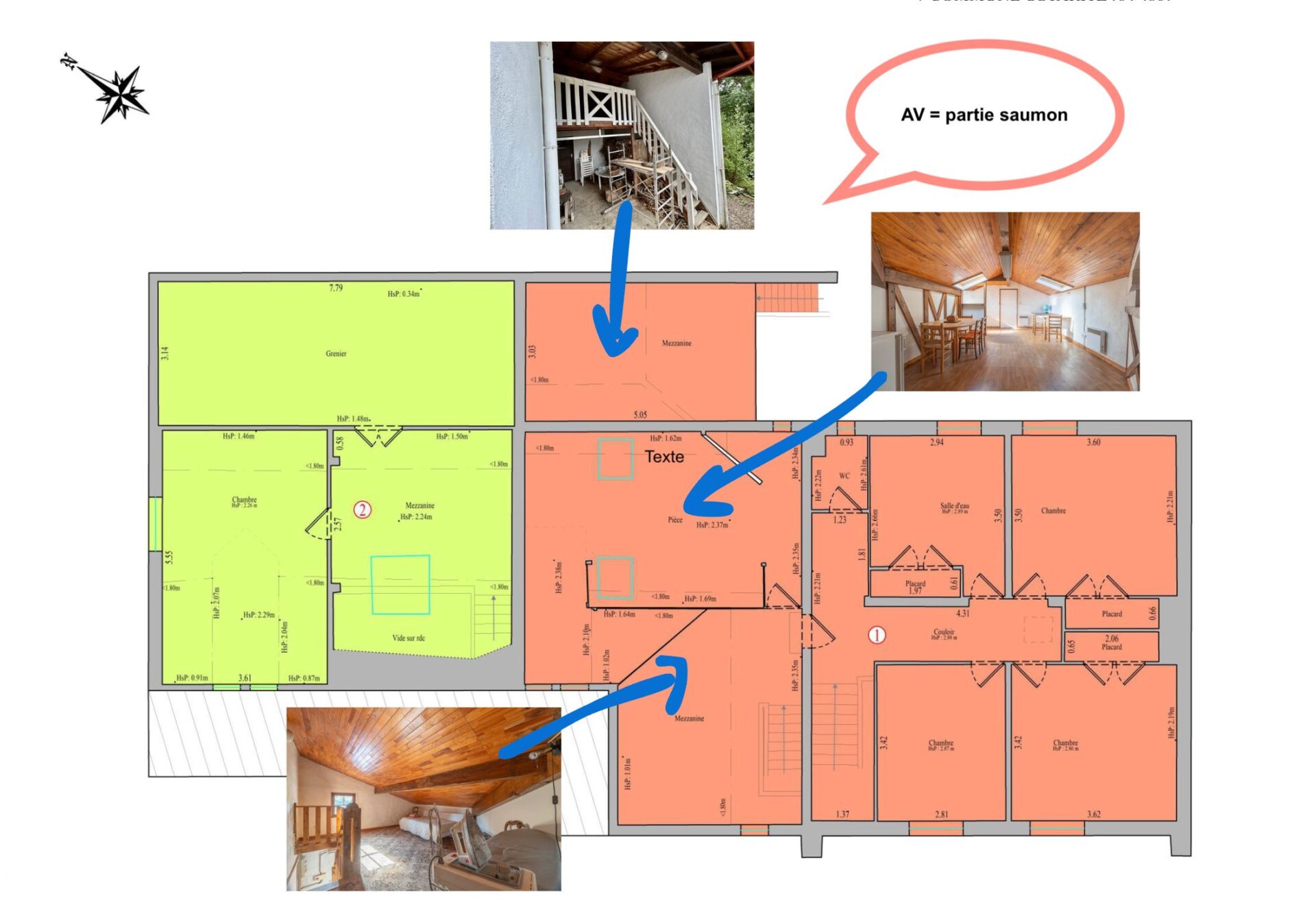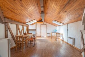 À l’étage, la maison propose trois chambres, une mezzanine, un WC séparé, une salle d’eau d’environ 9,8 m² et une pièce supplémentaire d’environ 21 m² pouvant faire office de 4ème chambre, suite parentale, bureau ou salle de jeux.