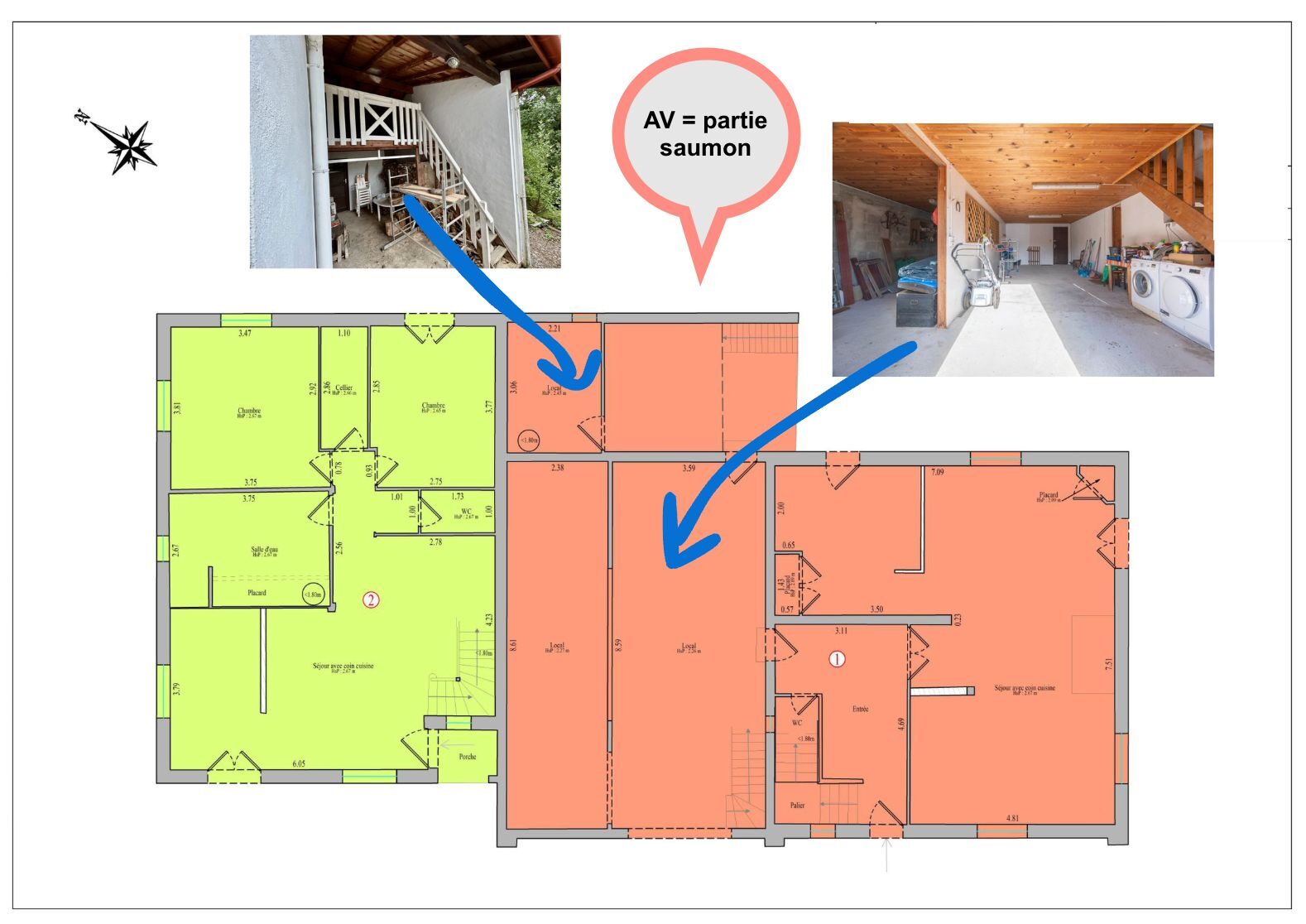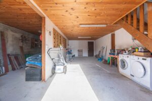 Au rez-de-chaussée, vous trouverez une pièce de vie d’environ 49 m² , un WC ainsi qu’un garage d’environ 50 m². Côté extérieur, une buanderie indépendante avec mezzanine complète l’ensemble.