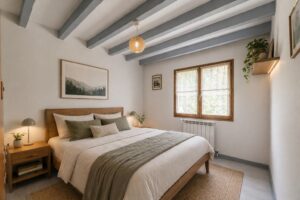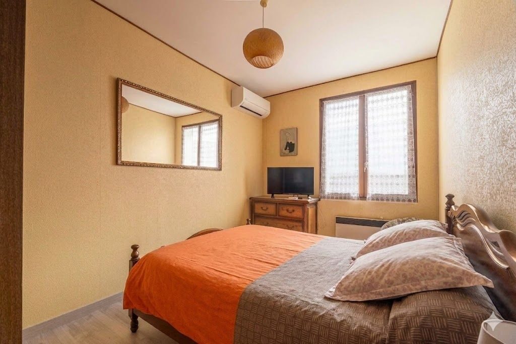 À l’étage, l’espace nuit se compose de trois chambres climatisées, dont deux exposées plein Sud, ainsi qu’une chambre supplémentaire sous combles au dernier niveau, avec WC et potentiel d’aménagement complémentaire.