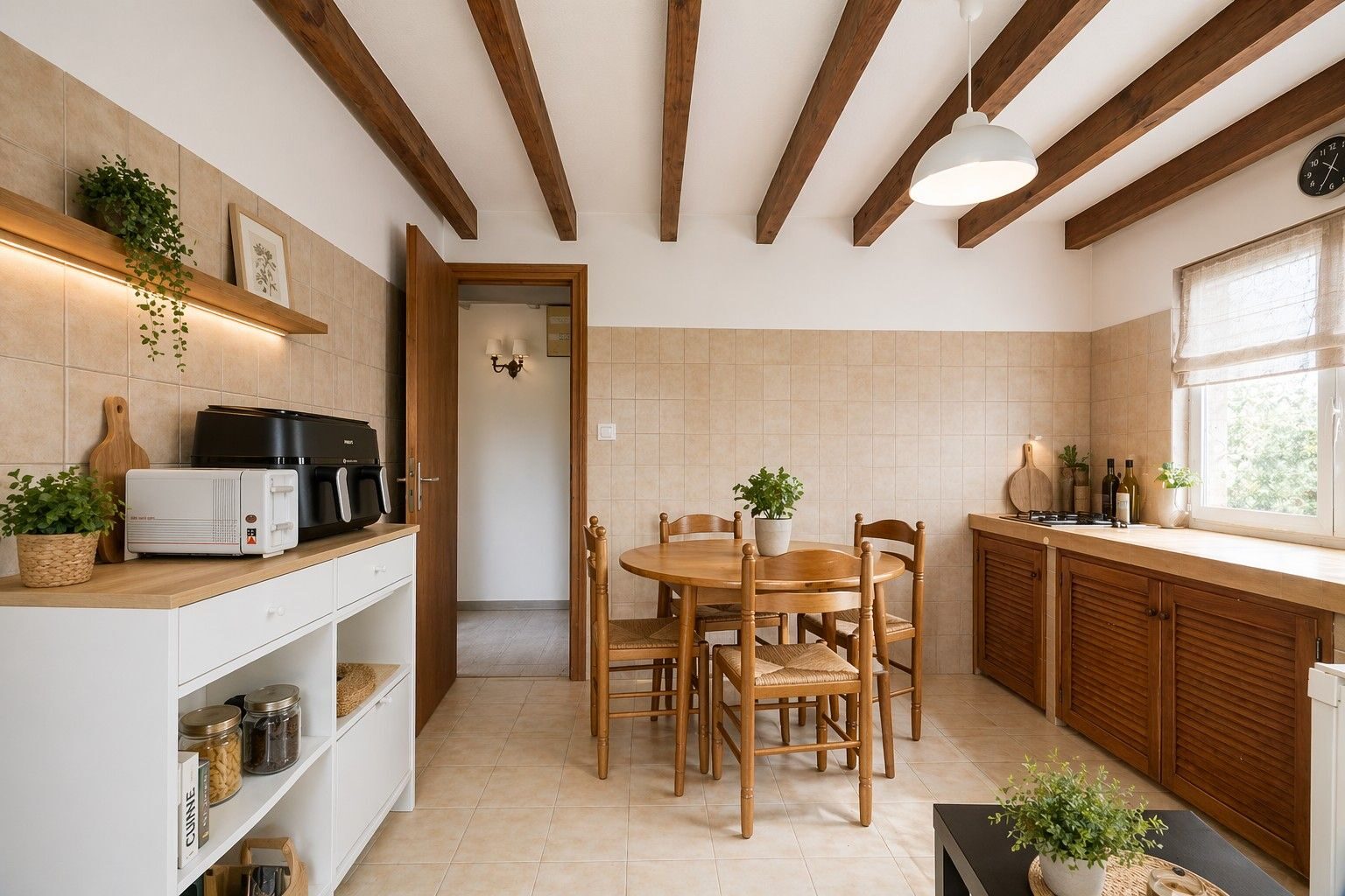 La maison dispose également d’un grand garage avec un espace atelier et un bureau.