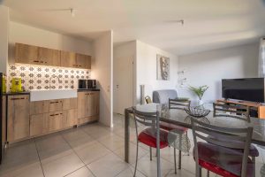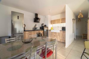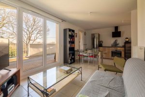 Dès l’entrée, une pièce de vie conviviale s’offre à vous, avec un salon spacieux et une cuisine ouverte parfaitement intégrée. La pièce s’ouvre sur une superbe terrasse de 20 m², exposée sud-est, où vous pourrez profiter de vos repas ou moments de détente en toute intimité, sans vis-à-vis.
